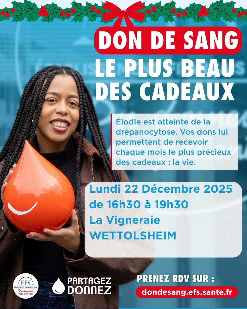 Don du sang , prochaine date : lundi 22 décembre 2025